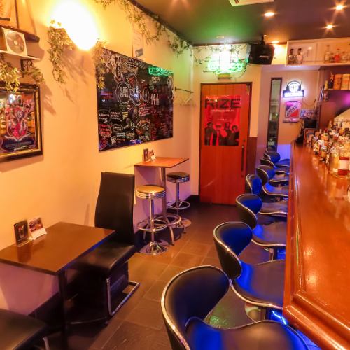 【ゆったりテーブル席あり】カウンターが苦手な人や、2人でゆっくり過ごしたいカップルにはテーブル席が安心。隣同士で会話を楽しみながら、気軽に過ごせる落ち着いた雰囲気。デートや静かな夜におすすめです。
